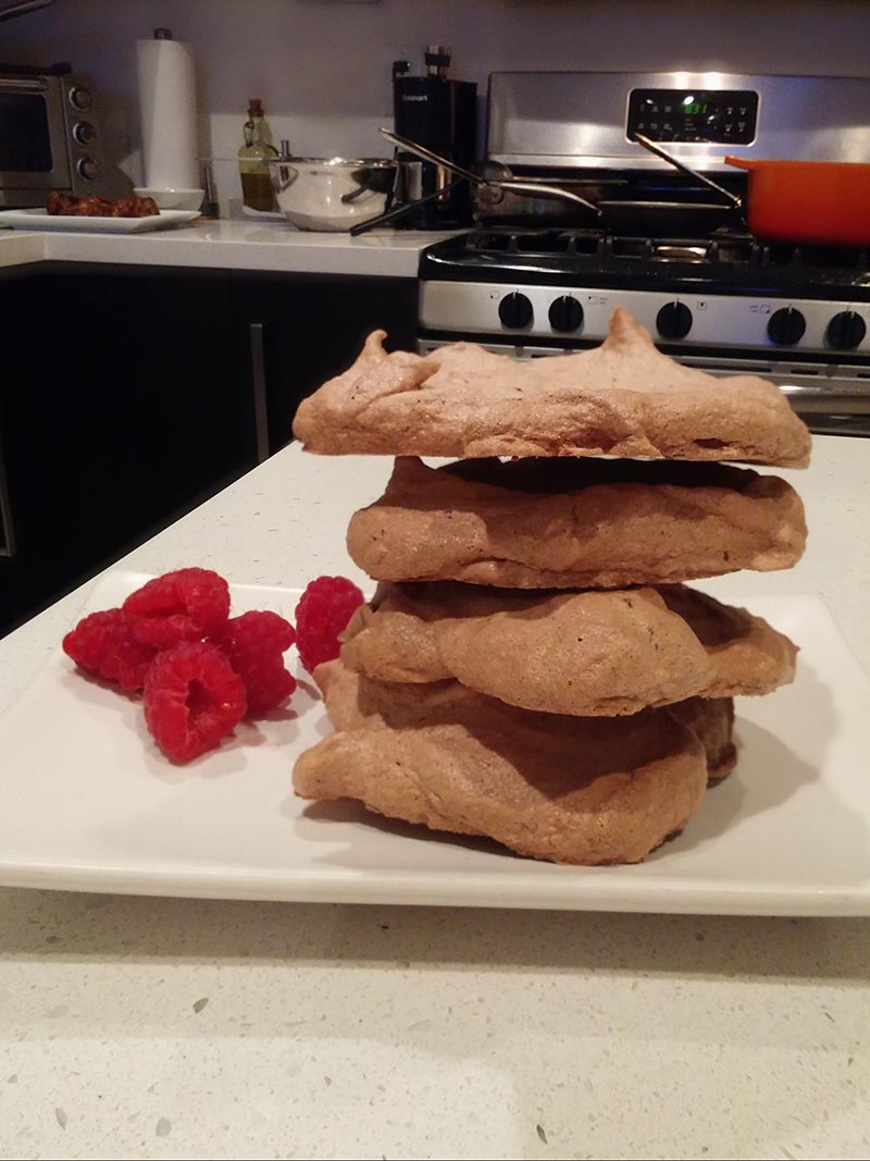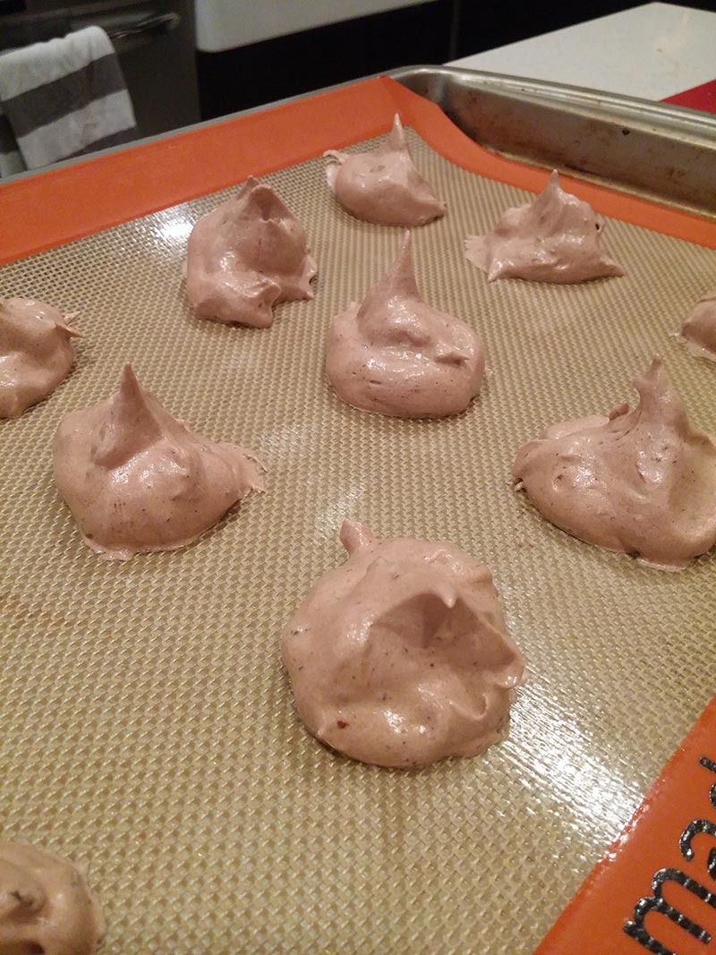 Let it cool: Turn off the oven and open the door slightly; let the chocolate meringue disks cool completely in the oven. When you are ready to serve, use a spatula to gently take them off the parchment paper or mat.